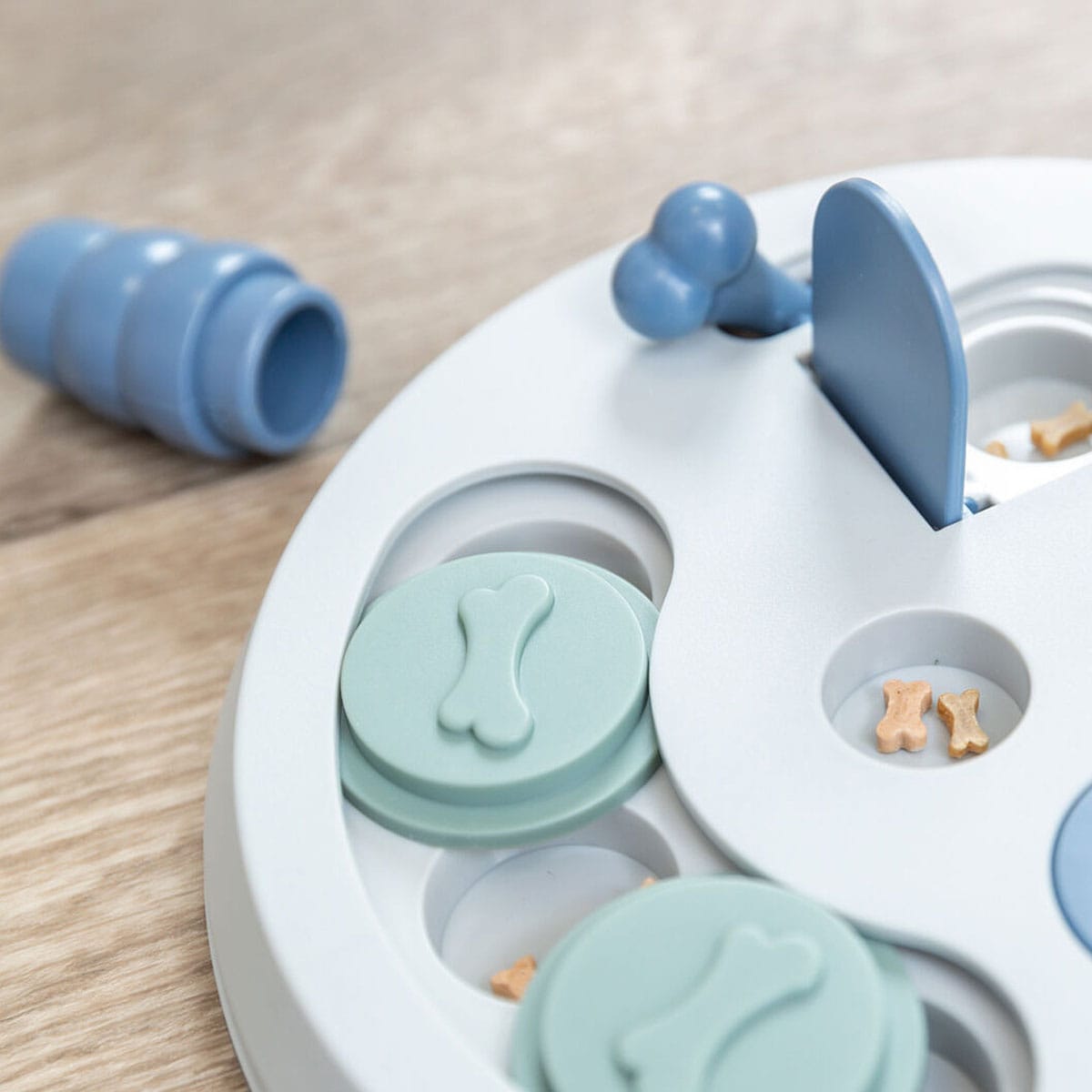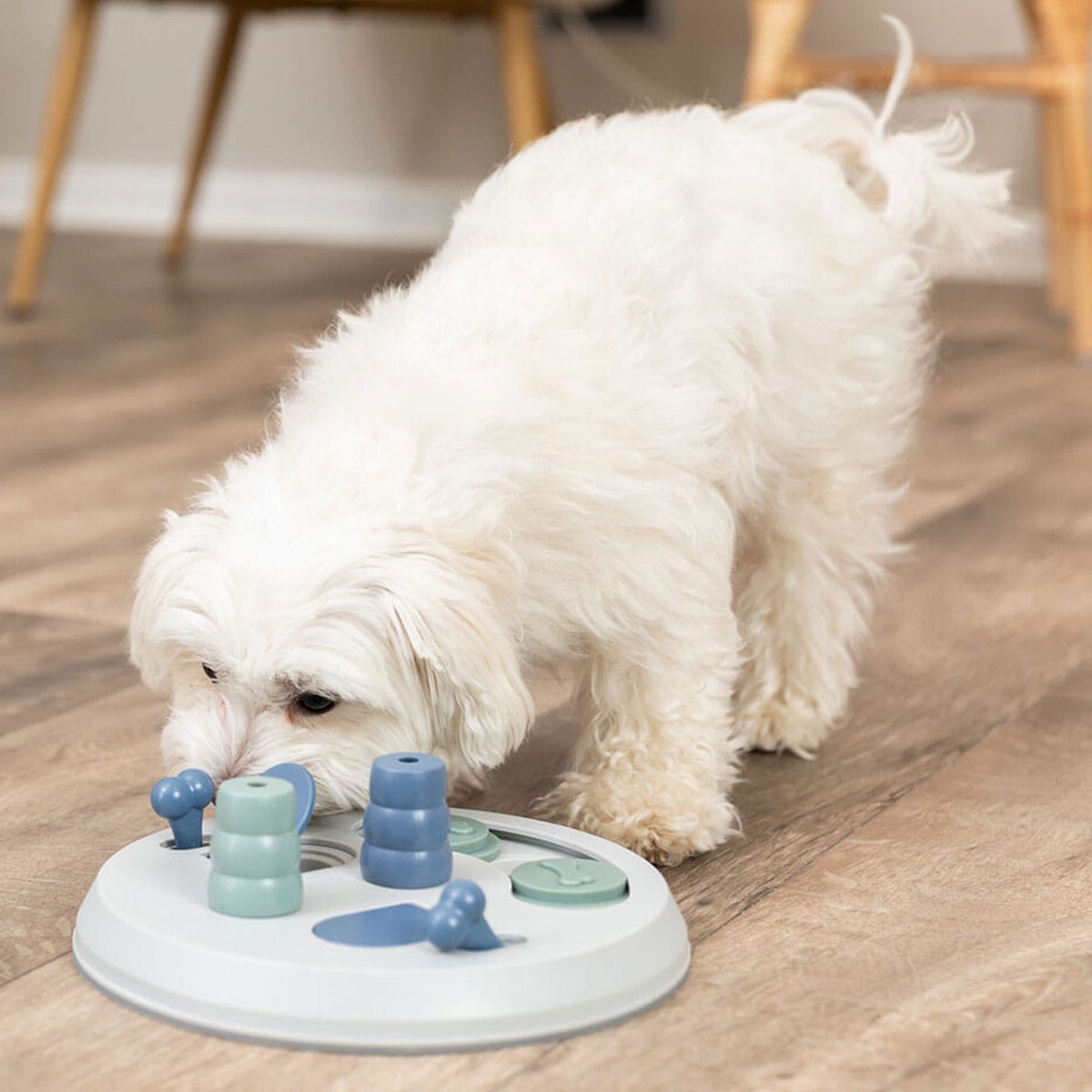 Šunys yra smalsūs gyvūnai, kuriems būtina protinė stimuliacija. Su šia žaidimu lenta galite žaismingai lavinti augintinio mąstymą ir stiprinti tarpusavio ryšį. Lentoje yra ertmių, kuriose galite paslėpti skanėstus. Norėdamas juos pasiekti, šuo turės suprasti kaip pastumti arba atidaryti dangtelius. Be to, yra du kūgeliai, kuriuos šuo turi nuversti letena arba nosimi, kad pasiektų atlygį. Puikiai tinka mažų veislių šunims. Neslystanti dėl guminio dugno. Pagaminta iš plastiko. Komplekte – rekomendacinis šuns mokymo gidas. Patikrinta nepriklausomos gyvūnų gerovės ir apsaugos ekspertų organizacijos. Galima plauti indaplovėje.