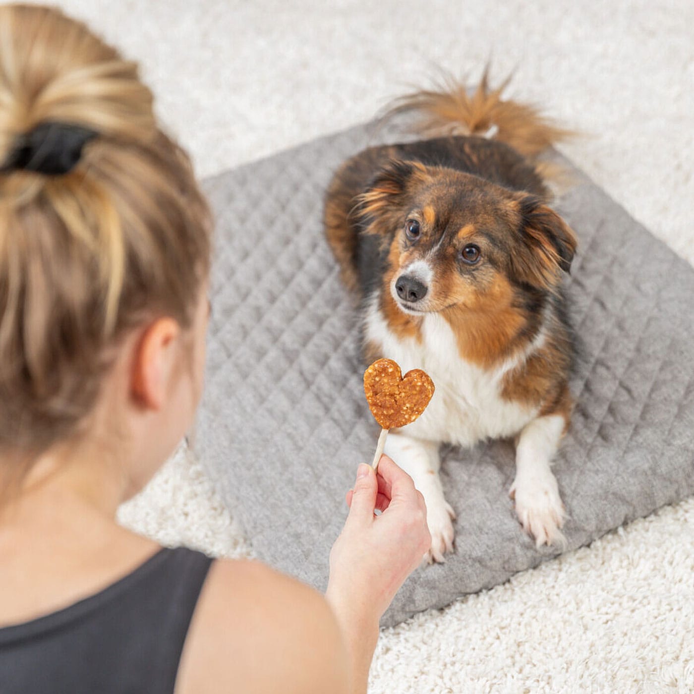 Trixie širdelės formos vištienos mėsa su ryžiais ant kramtomo pagaliuko, skanėstas šunims, 35 g