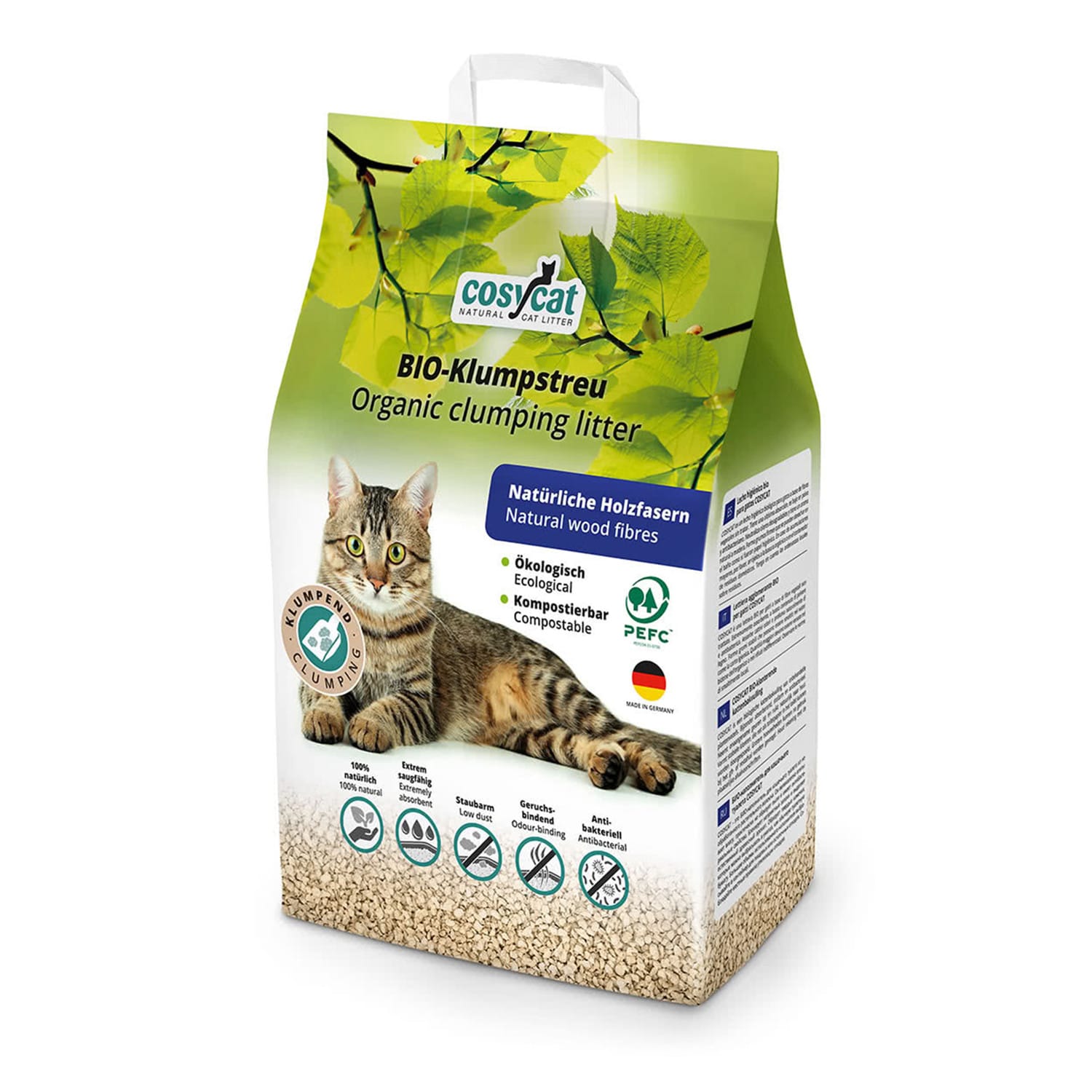 Sušokantis kačių kraikas CosyCat yra katėms ir klimatui draugiškas kraikas. Tvarus produktas gaminamas iš gryno augalinio pluošto, kuris apdorojamas taip, kad susidarytų minkštos granulės su mažai dulkių. CosyCat natūralus pjuveninis kačių kraikas malonus katės letenėlėms, panaudotas sušoka į grumstelius todėl yra labai ekonomiškas. Jokių kvapų, stabilūs gumulėliai, lengvas pašalinimas. Pagamintas Vokietijoje.