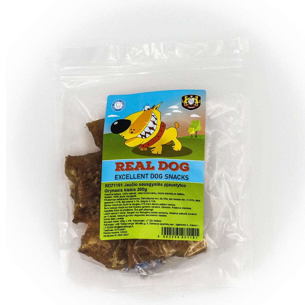 Real Dog natūralios džiovintos jaučio sausgyslės, pjaustytos, skanėstas šunims, 200 g