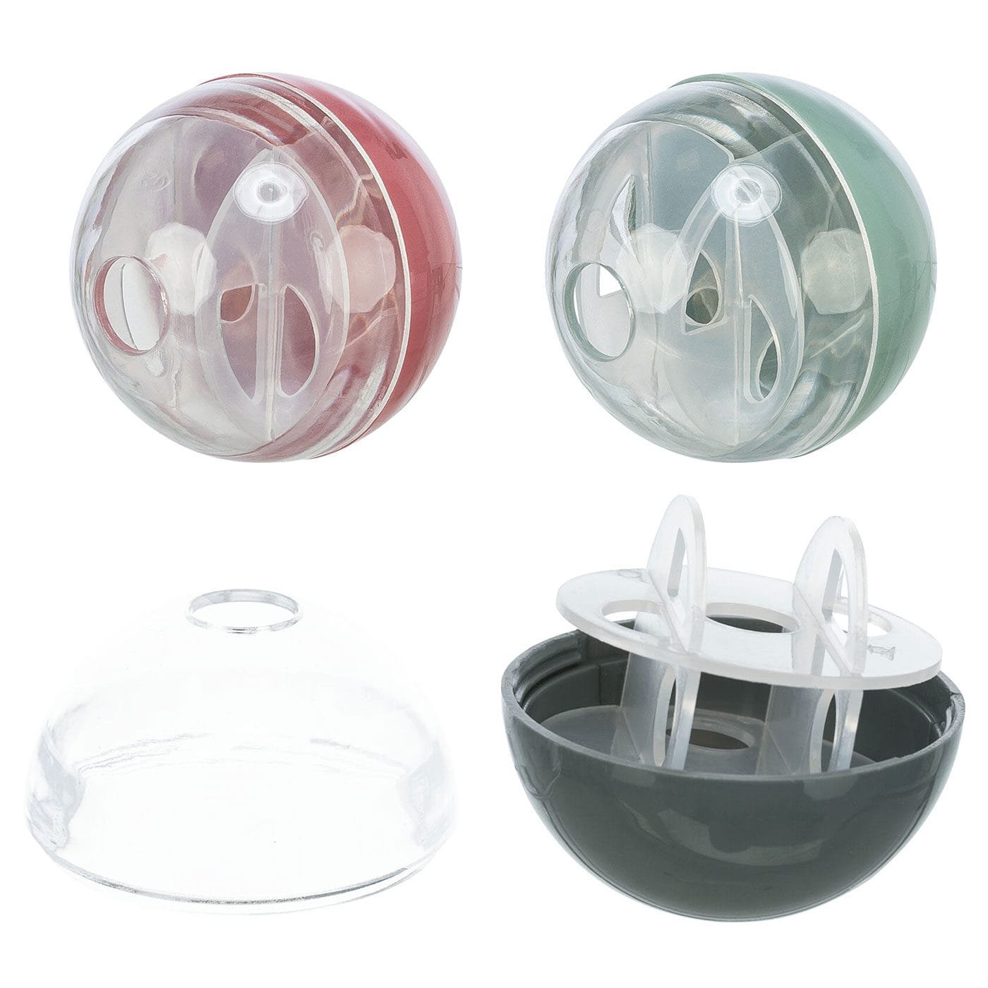 Pagamintas iš plastiko. Viduje esantys labirinto tipo grioveliai užtikrina, kad skanėstas neiškristų iš karto, todėl žaidimas užtrunka ilgiau ir skatina katės mąstymą. Atsidaro atsukant. Produkto spalva parenkama atsitiktiniu būdu.