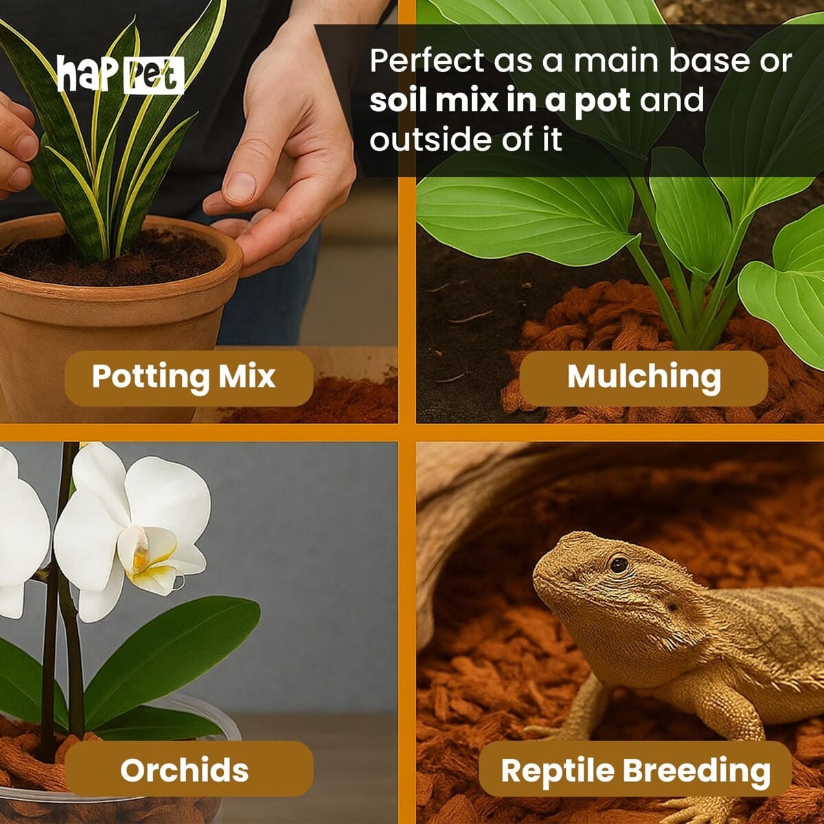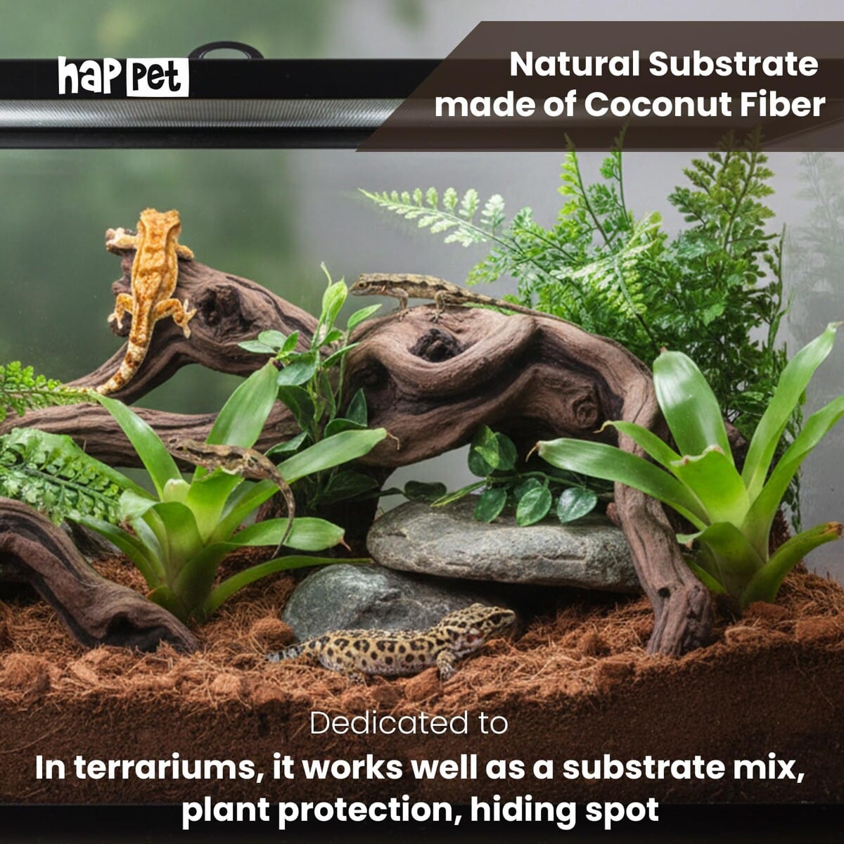 Happet Coco Chip stambios frakcijos kokoso kevalo substratas terariumams ir augalams, 500 g