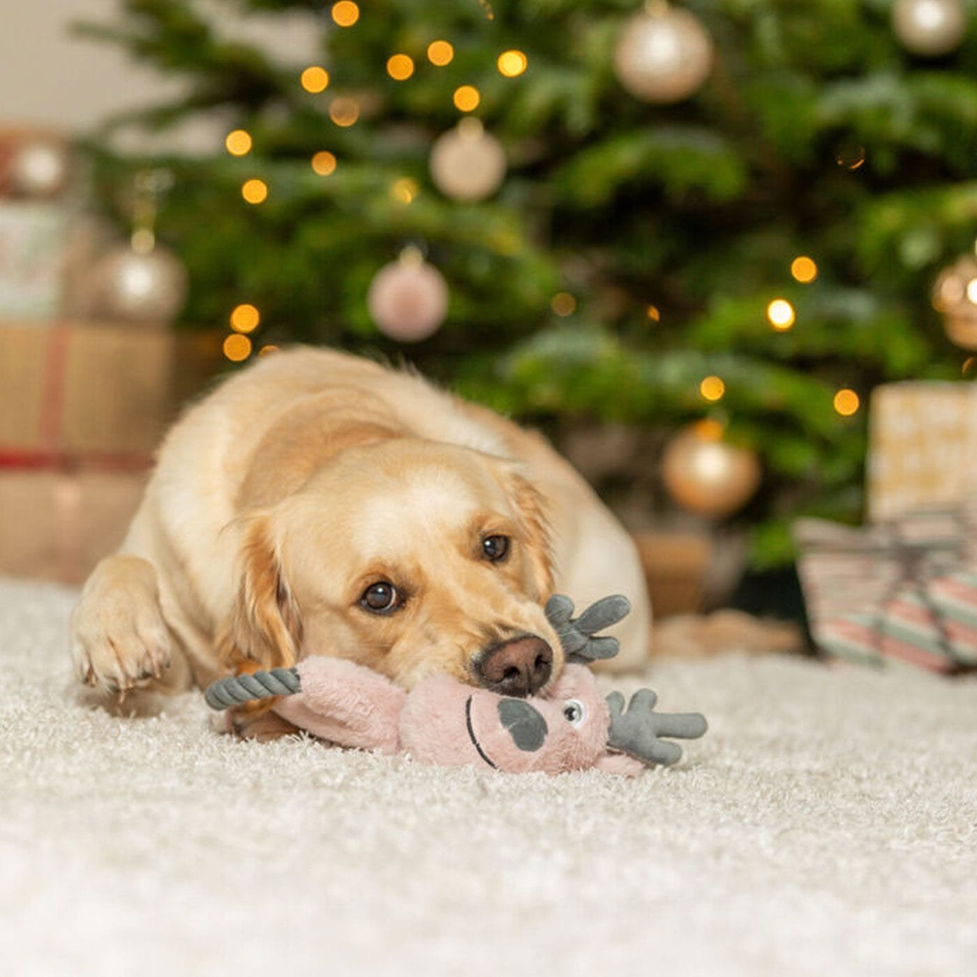 Trixie minkštas žaislas šunims rudolfas, su čežačia folija, rožinis